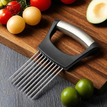 Stainless Steel Onion Holder and Vegetable Slicing Aid Kitchen Cutting Tool