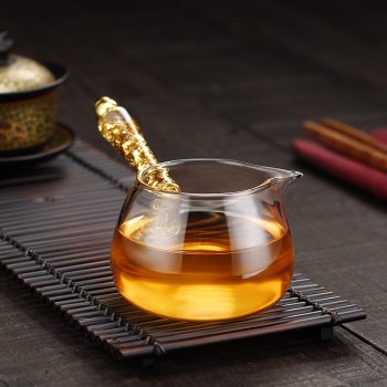Gold Foil Glass Fair Cup with Side Handle – Heat-Resistant Teaware 10oz