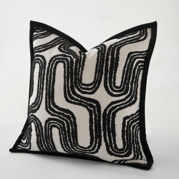 Beige Black Retro Geometric Chenille Cushion Cover 18x18in